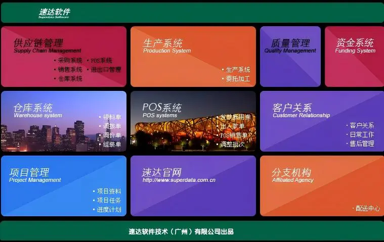 速达5000采用模块化设计,主要分为业务系统、资金系统、帐务系统和分支机构管理四大板块。工业版额外包含生产系统模块,以满足制造型企业的特殊需求。